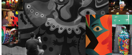 Masefield)體認到快樂也可以賜與人類心靈更清晰的洞見,洪易的創作正是基於這樣的信念。他喜歡用輕快、戲謔的圖像及奔放快樂的色彩,並且常在城市街道上尋獲圖案及造型的靈感。洪易為富邦人壽大樓的開放廣場創作一只巨大的街角杯子,帶有一種趨近童話故事裡愛麗絲夢遊記的虛構尺度,使廣場成為城市仙境,充滿新奇與活躍的喜悅。這隻福杯上有五個窺孔,孔內的萬花世界為好奇的人們帶來更繽紛的想像;入夜之後,杯體定時會吞吐噴霧,就像是具有生命的氣息,表現溫暖的熱度,一「杯」子(一輩子)的祝福可以持續並延伸快樂的視野。