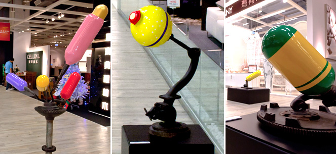 這系列作品使用厚重的鋼鐵作為創作材料,鋼鐵所具擁的機具語言與工業性的代表,強化了作品物件的強度;而作品中的橢圓形體-烤漆鋼桶,形似充氣氣球的造形除豐富視覺美感外,也承接藝術家過往擅長的「充氣」系列作品的脈絡表現。企圖挑戰「鋼鐵藝術與充氣軟雕塑藝術」間的轉化與結合,呈現有別於過往鋼鐵的「重/硬」屬性轉而「輕/軟」,並探討系列作品延伸的面貌樣態。